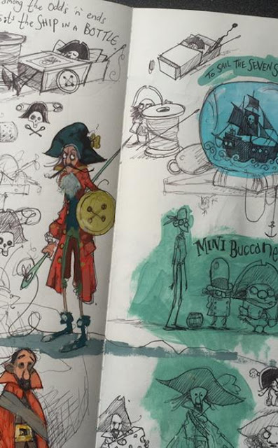 Here are some stunning snippets from Chris Mould's Pocket Pirates sketch book... Inspaaaarghrational, a true master of pen and ink.